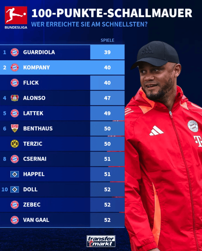 OD独家:德甲最快百积分主帅榜出炉:瓜迪奥拉居首 孔帕尼追平弗里克跻身第二